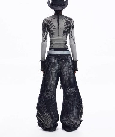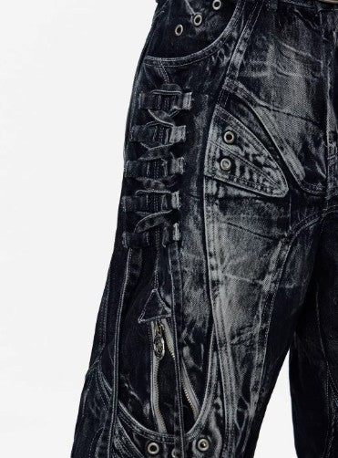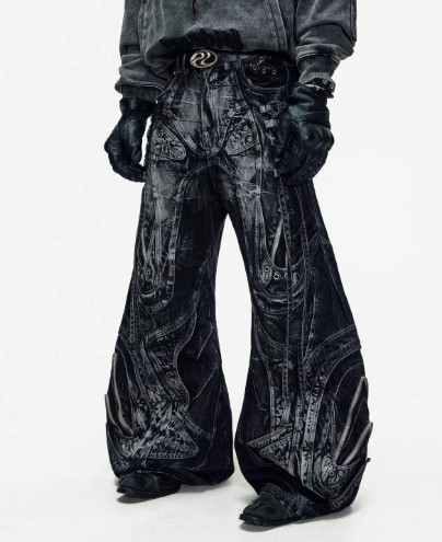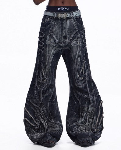 Alien-inspired Drawstring-adjustable Silhouette-defining Patchwork Denim Jeans