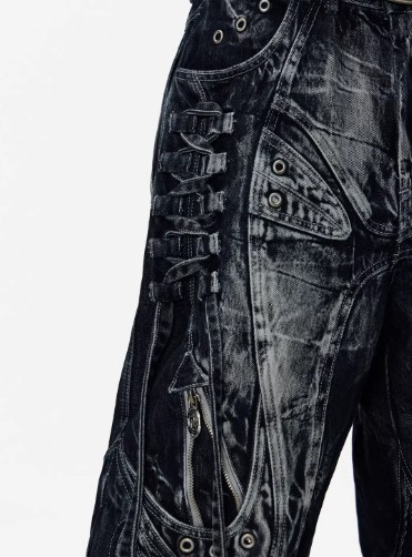 Style Details: Distressed finish, 3D embellishments, patchwork, metal accents, structured tailoring