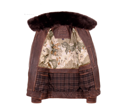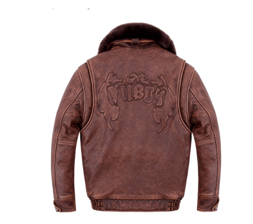 American Style Men's Casual Flight Suit Genuine Leather Jacket