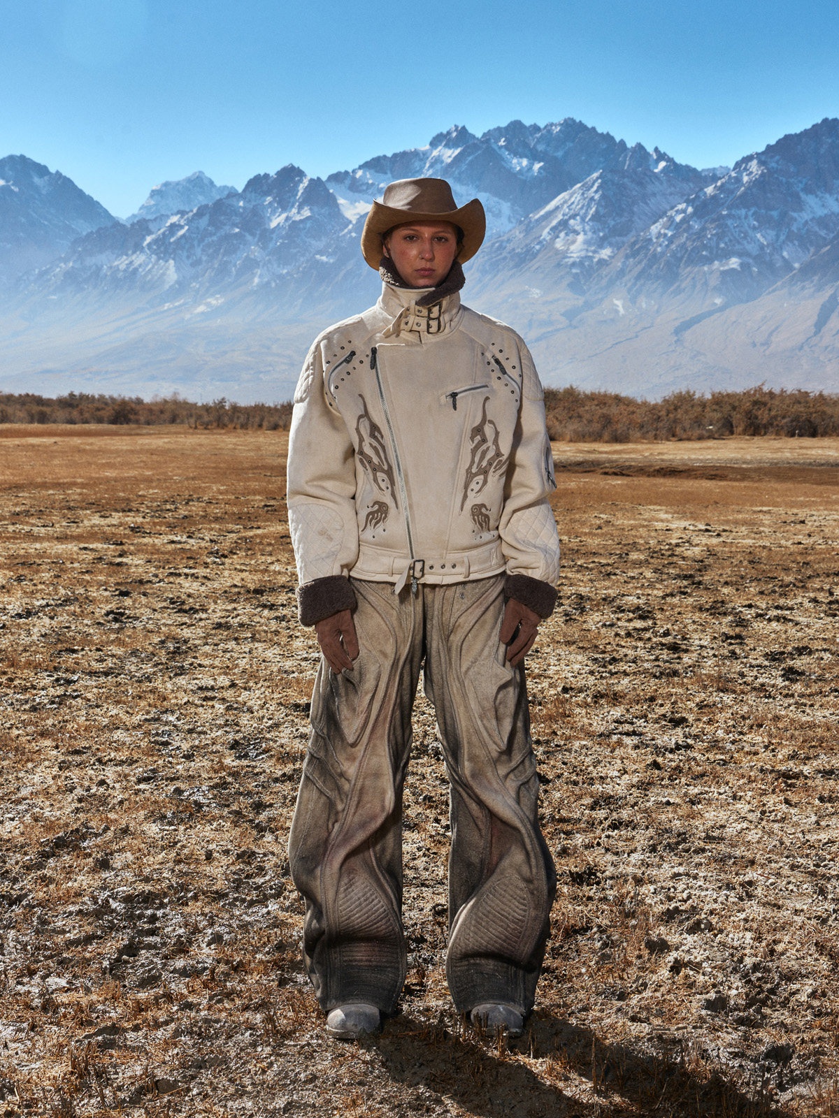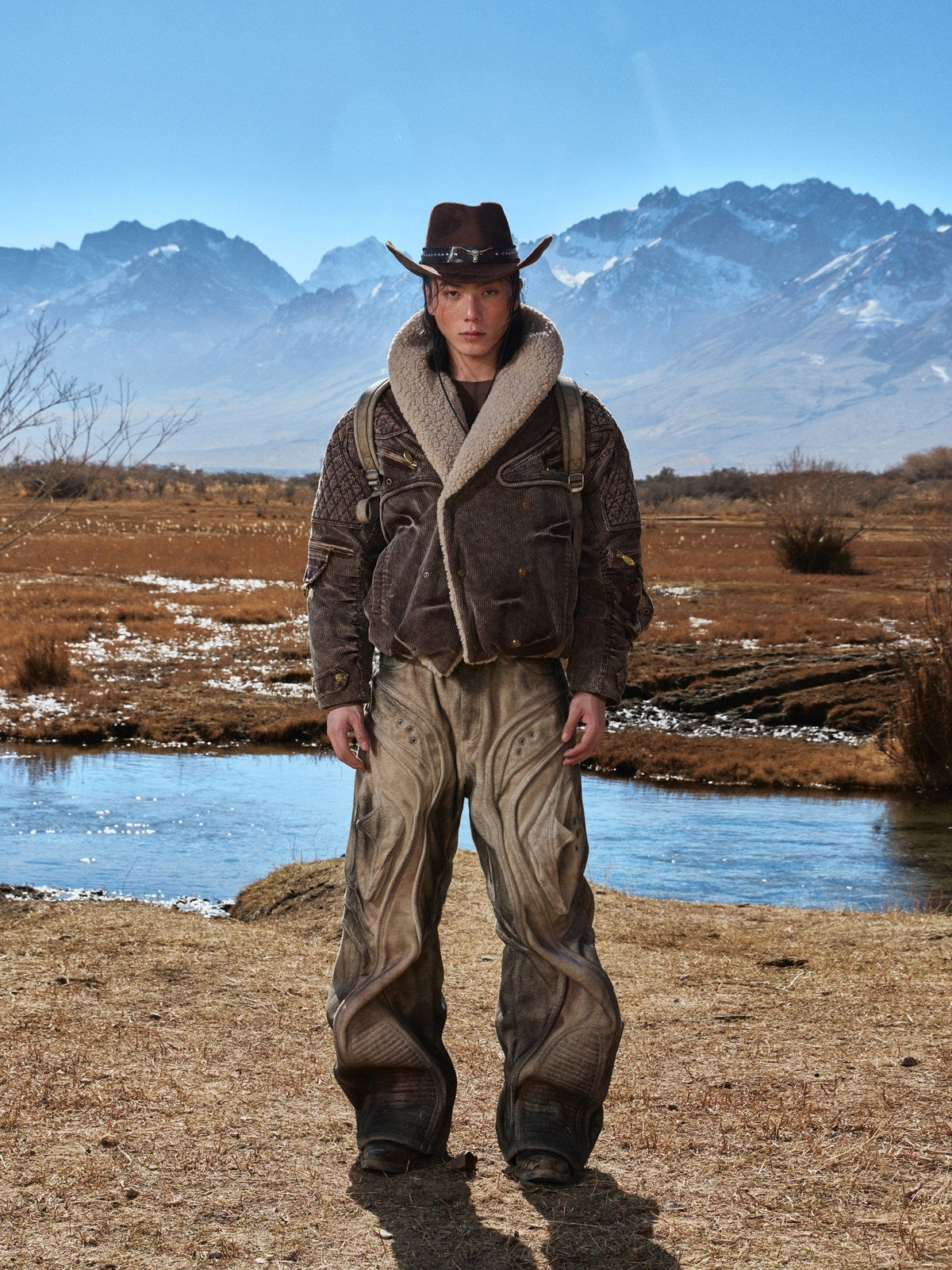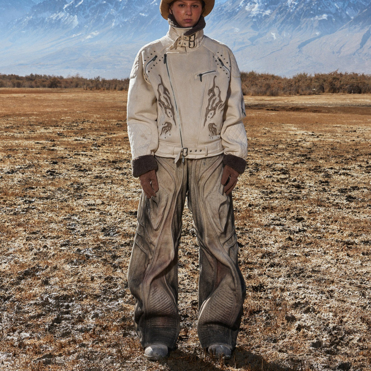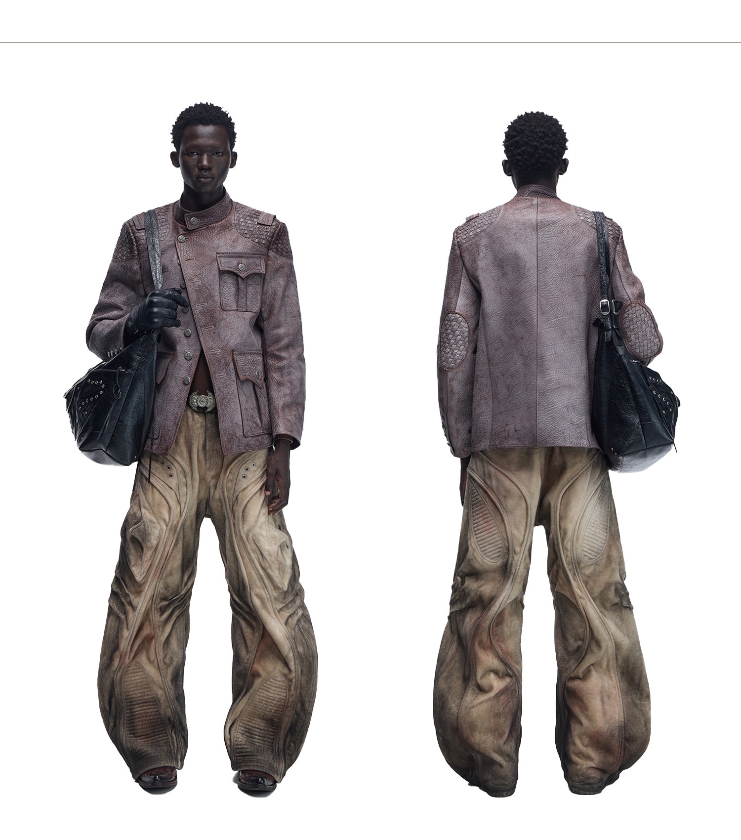 Fuzzy-textured Faded Three-dimensional Structured Denim Jeans