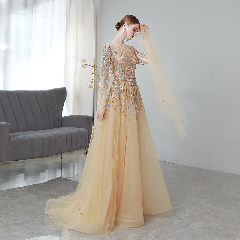 Gold High End Flying Sleeve Long Evening Dress