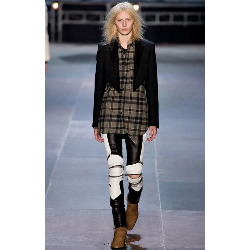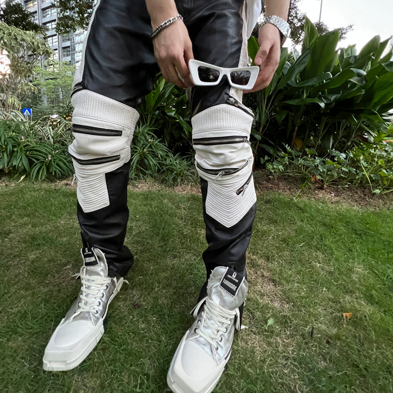 Tide Niche Casual Zipper Sheepskin Leather Slim Fit Pants Men Skinny Avant Garde Trousers